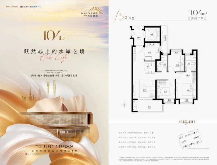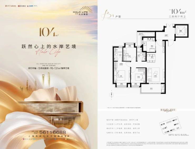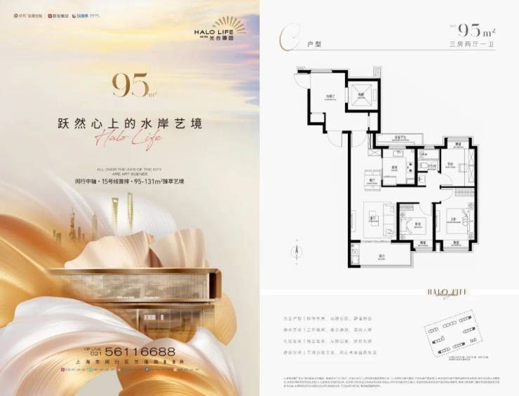 保利联发·光合臻园二期建面约95-131㎡3-4房即将入市效果图户型图如下:…