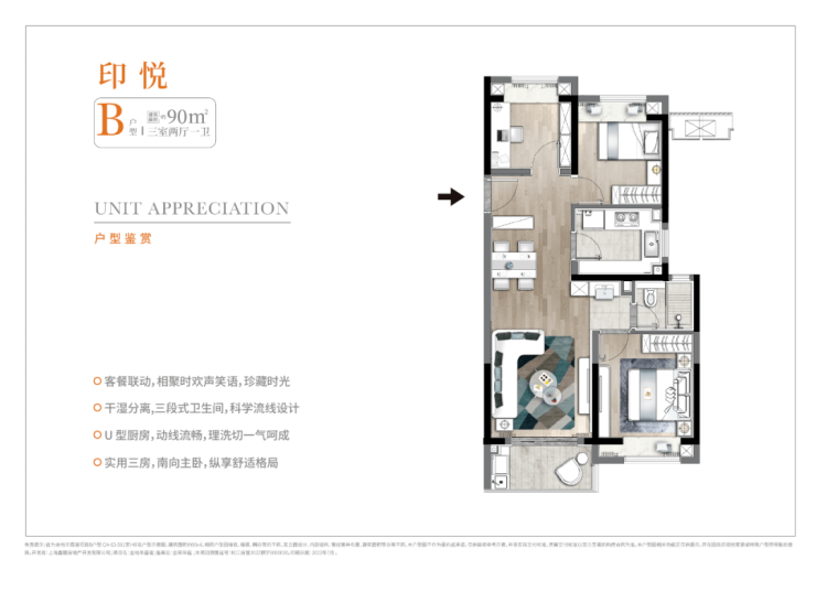 免责提示:此为金地丰盛道项目B户型(24-63-501室)标准户型示意图,建筑面积约90㎡。相同户型因楼栋、楼层、朝向等的不同,其立面设计、内部结构、管线管井布置、建筑面积等亦有不同。本户型图不作为要约或承诺,仅供装修参考示意,并非实际交付标准,房屋交付标准以双方签署的购房合同为准。本户型图相关功能区仅供展示,存在因政府规划变更或特殊户型而导致的差异。