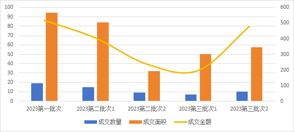 第一批次共成交19幅地块,成交总面积94.4万㎡,成交总价518.84亿元。