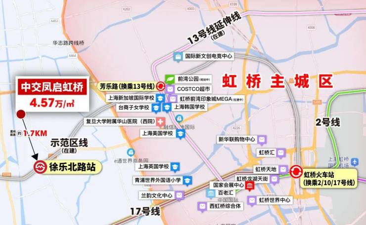 叠加横贯凤溪的示范区线轨交利好,【中交·凤启虹桥】坐拥规划中的徐乐北路站,进一步拉近与大虹桥的距离,未来从徐乐北路站上车,1站芳乐路站,可换乘轨交13号线(西延伸,在建),2站直达虹桥站,轻松换乘17、10、2号线,大虹桥下一个“换乘王”极速而来。