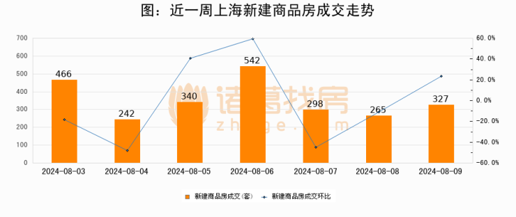 【上海成交日报】08月09日新房成交327套;涨价房源160套