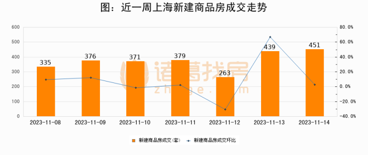 【上海成交日报】11月14日新房成交451套;涨价房源282套