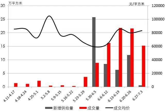 基于高价位产品继续保持活跃,均价再度突破8万元/平方米大关,为83172元/平方米,环比上涨4.22%。