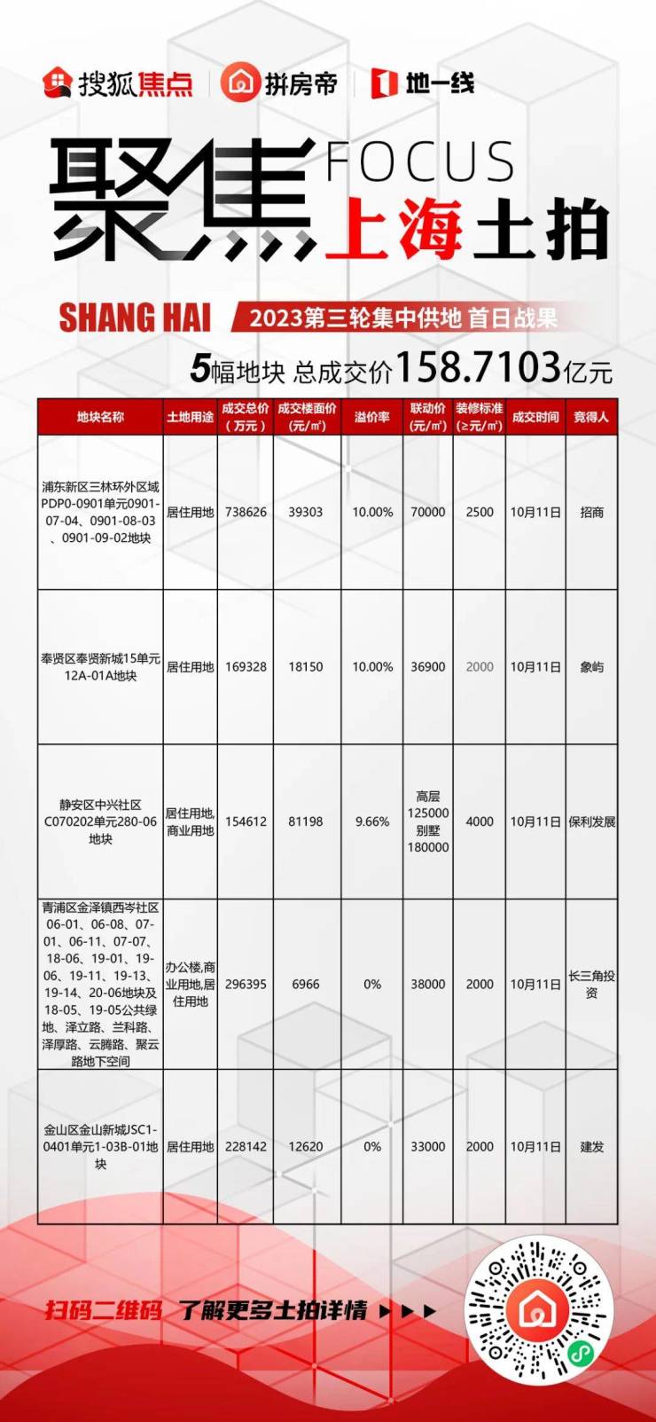 直击上海第三轮土拍首日:卷出新维度,5地块揽金158.71亿元