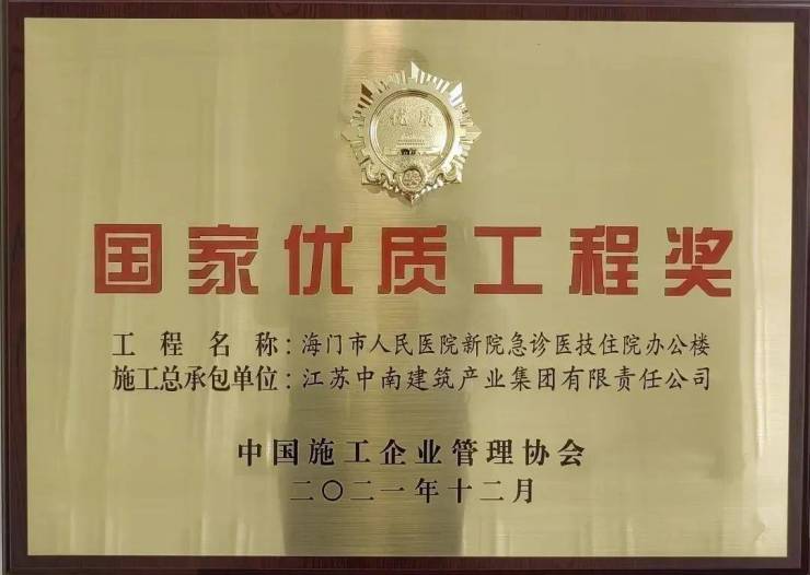 近日,由中国施工企业管理协会举办的“庆祝国家优质工程奖创立40周年暨2020-2021年度国家优质工程奖颁奖会”在北京召开。活动上,由中南建筑承建的“海门市人民医院新院急诊医技住院办公楼工程”、“东营奥体中心项目游泳馆工程”和旗下中南土木承建的“北京市通州运河核心区市政配套工程北环环隧”、参建的“苏州市轨道交通3号线”等四大项目分别荣获国家优质工程奖。