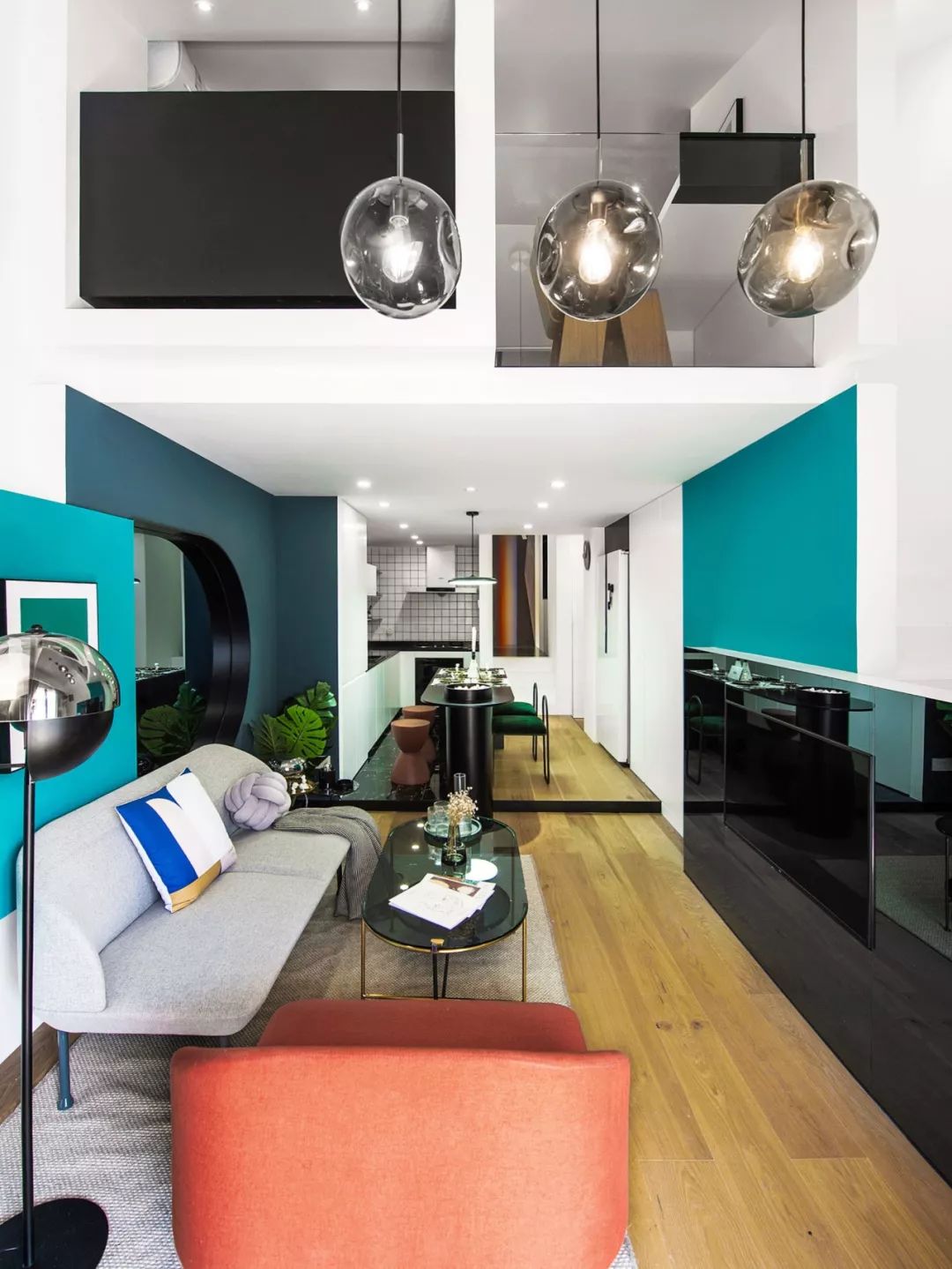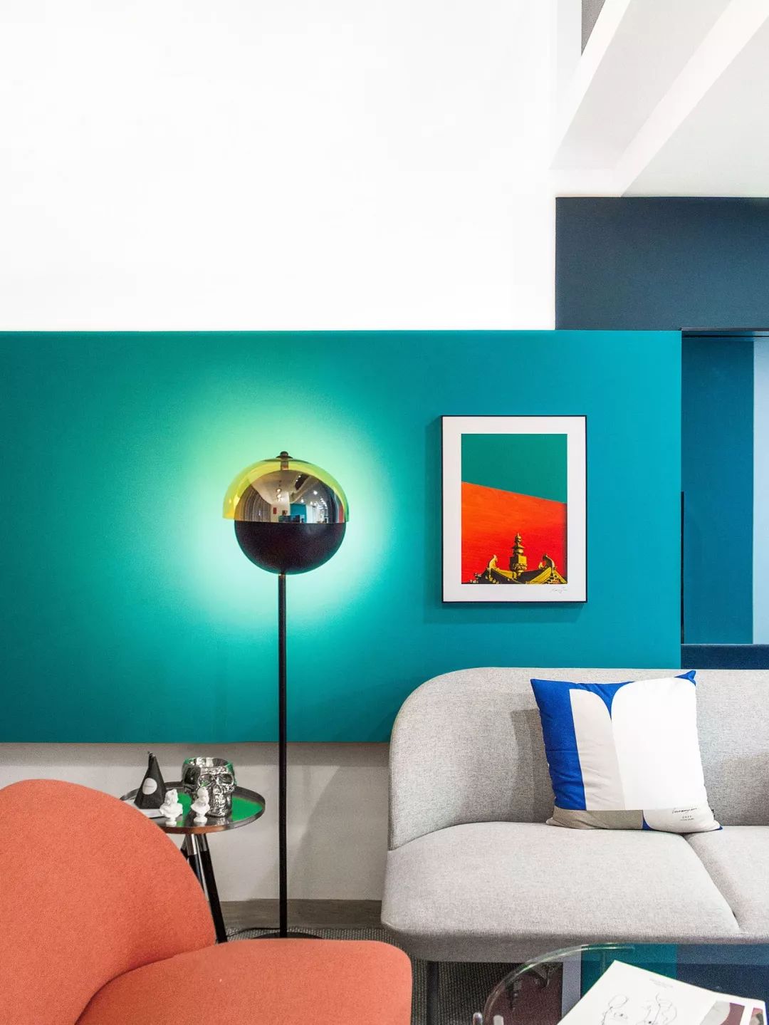 只在客厅这个区域大面积地使用色彩就已经可以达到