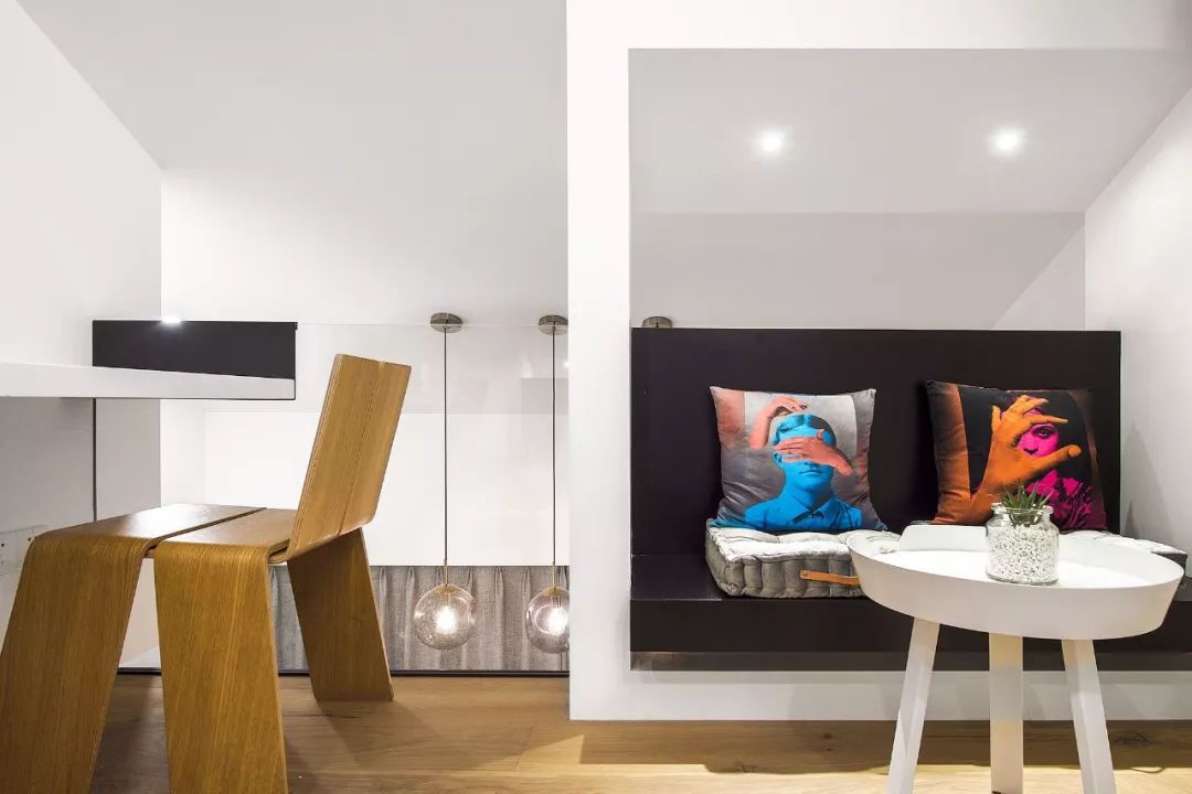 虽然进行了加盖,但仍有两处保留了原本的层高,这样保证了空间不会有压抑感
