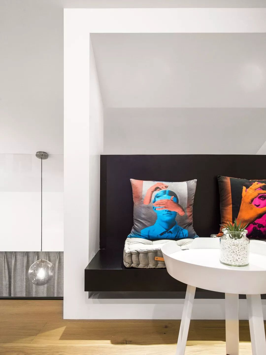 每一块区域都用几何形状或是色块来区分开,使得区域划分更明显,视觉上显得房间里的空间更多样