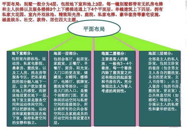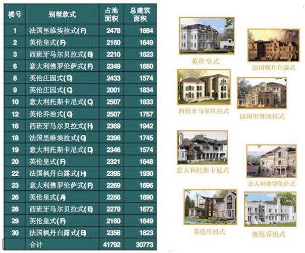 建筑风格:以英、法、西、意四国的建筑为设计蓝本,衍变出八种不同的建筑风格。英伦皇式、英伦庄园、英伦乔治、法国枫丹白露、法国里埃维拉、西班牙马尔贝拉、意大利佛罗伦萨、意大利 托斯卡尼。檀宫有A B C D E F G H八款房型。以上八种风格与这八款房型组合衍生成十八种不同的建筑个性。