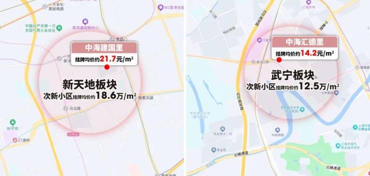 我统计了目前上海中心城区中海旗下过往作品的二手价格,比如新天地的中海建国里、苏州河畔的中海汇德里。