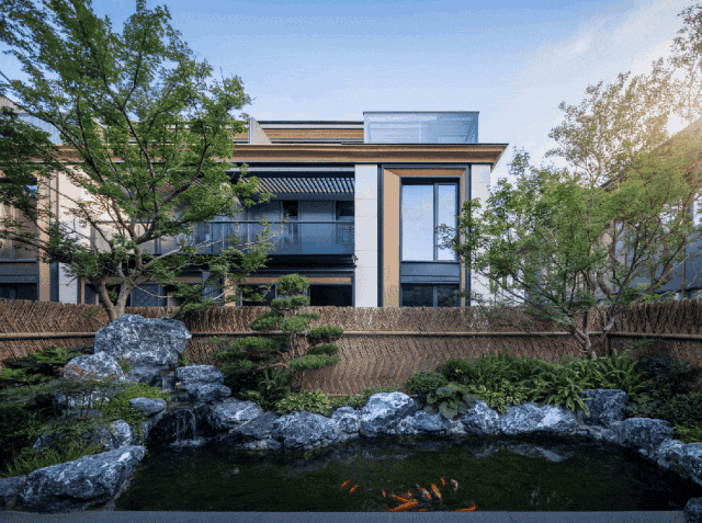 国贸·海上原墅作为广富林溯源之作,打造诗意会所空间,包含泳池、私宴厅、下沉庭院等功能。并且引入黑松、山石、景墙、草坪等人文自然资源,呈现一处充满国风艺术感的社交场!(展示的售楼部、健身房、瑜伽会所等为临时展示,实际为社区配套用房,后期将移交政府单位,具体用途以政府规划为准。)
