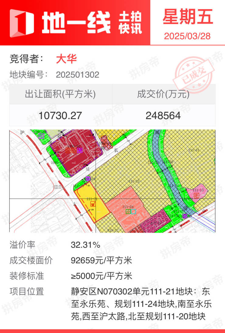 大华24.8564亿元竞得大宁纯宅地,溢价率32.31%