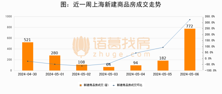 【上海成交日报】05月06日新房成交772套;涨价房源9套