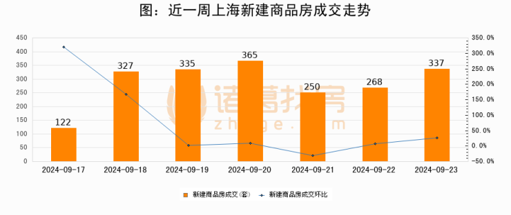 【上海成交日报】09月23日新房成交337套、二手房553套;涨价房源142套