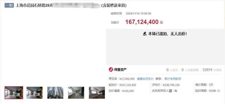 近期,一套起拍总价约1.67亿的汤臣一品复式房源,在阿里法拍上挂牌3日“无人问津”,惨遭流拍命运。