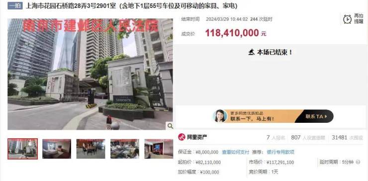 其实,在汤臣一品这套复式房源流拍的时候,上海法拍市场,是有高端住宅房源拍卖成功的。