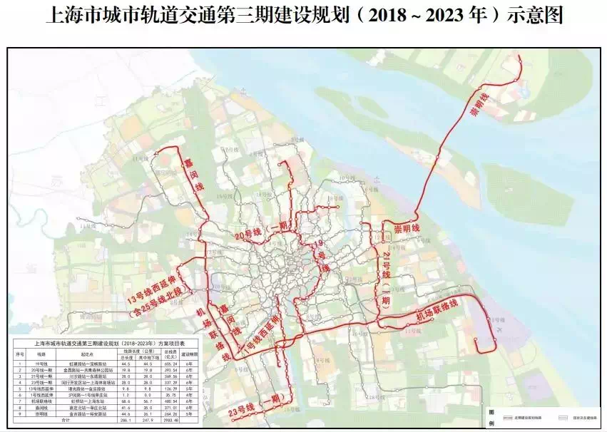除此之外,根据《上海市城市轨道交通第三轮建设规划(2018-2023)》,上海近期还规划有5条轨交线路——19号线、20号线一期、21号线一期、23号线一期、1号线西延伸。