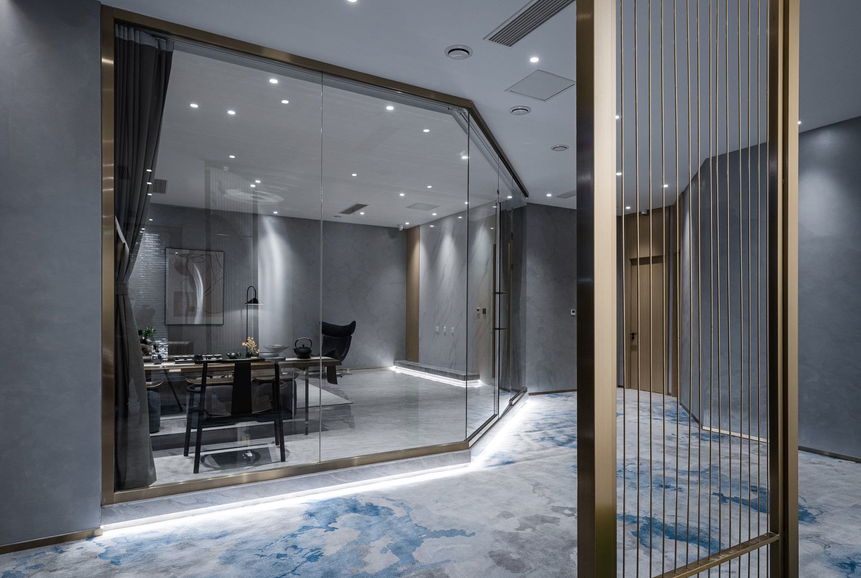 茶桌用了现代的材料和原木结合的方式出现在现代家具的配合下,共同上演了一场现代与传统文化的视觉享受。从平面布局、设计手法及主题寓意上这个设计作品很好的诠释出了客户对未来的期许和幸福生活。