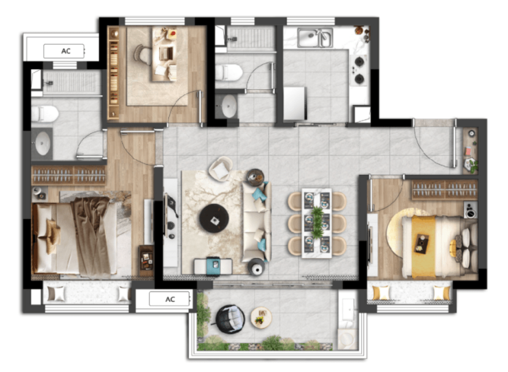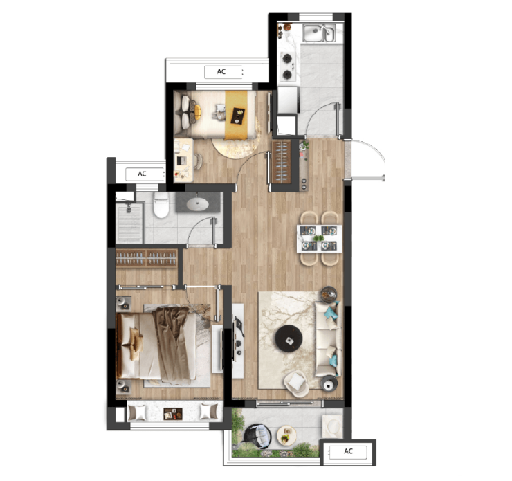 Ø LDK(客餐厨)一体化设计,提升空间利用率,缩短居家动线;