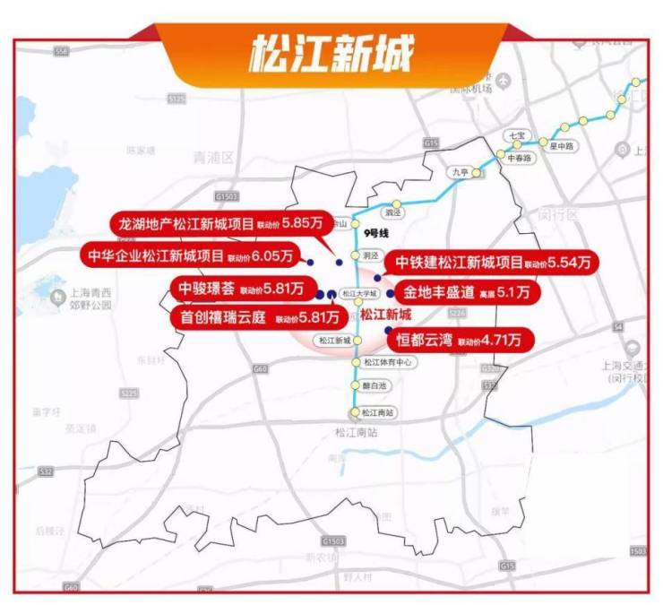 截至目前,松江新城最新房地联动价已经跃升至6.05万元/㎡,同区域内金地丰盛道、中骏璟荟、首创禧瑞云庭及中铁建新项目的房价或联动价均处于5.1~5.81万元/㎡的高位区间;另一方面,2015年老盘恒大帝景二手房均价为5.1万元/㎡、去年交付的云著·深蓝二手房均价达到5.5万元/㎡。