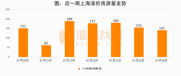 根据诸葛找房数据显示,上海24小时涨价房源量为141套,较07月25日减少14套,环比下降9%。与此同时,涨价房源占比小幅回落,对于购房者来说是一个入市窗口期,购房者可抓住时机入市。