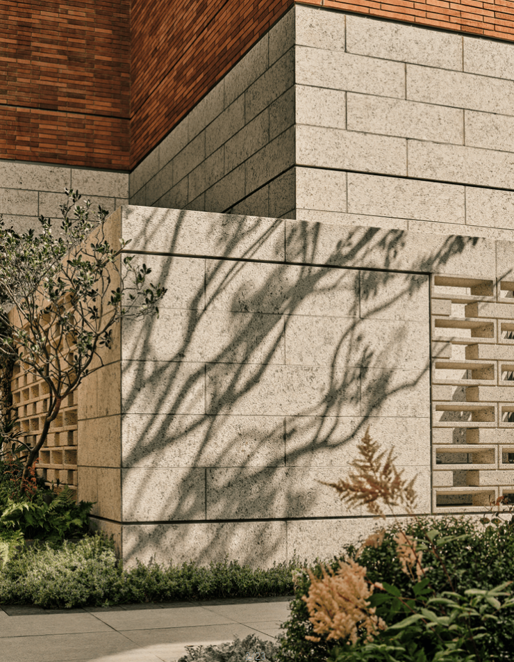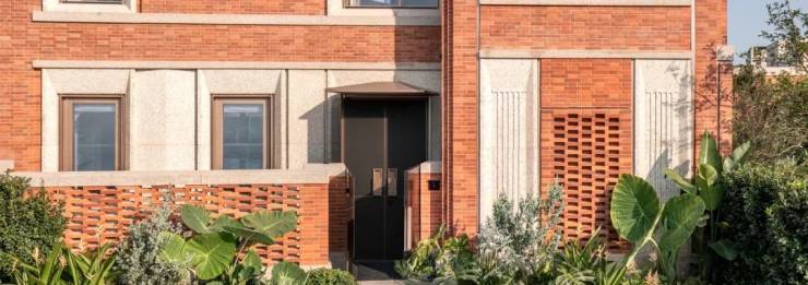 在立面的打造上,为瑞安·翠湖滨江创新地甄选深色、浅色、过渡色四种不同色度的红砖拼筑而成,既保留了传统红砖的优雅,又充满了一股属于当代的轻盈与时尚。灵动的红砖搭配庄重典雅的石材,碰撞出轻盈的国际感与现代感,是将属于上海隽永的海派气质与雅致风范演绎得淋漓尽致。