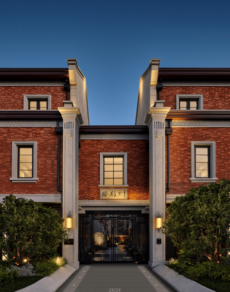 每一处细节都可以看出翠湖滨江的极尽用心——精巧的红砖镂空景墙、房檐上隐约可见的山茶花雕花、极具海派韵味的石库门、石材斜切面的窗套。编织肌理的院门尽显简约大气,配以仿铜奢石把手,著写翠湖滨江的深思与考量。为了致敬在地文化,平凉路沿街区域采用了具有历史文化气息的红砖,而社区的内部,则创新地采用了更符合当下审美的长砖,由外而内的灵活衔接与运用,给每一位到访者带来丰富的视觉体验。