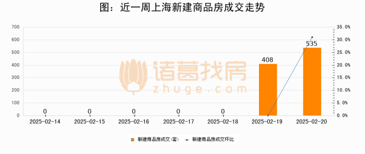 【上海成交日报】02月20日新房成交535套;涨价房源196套