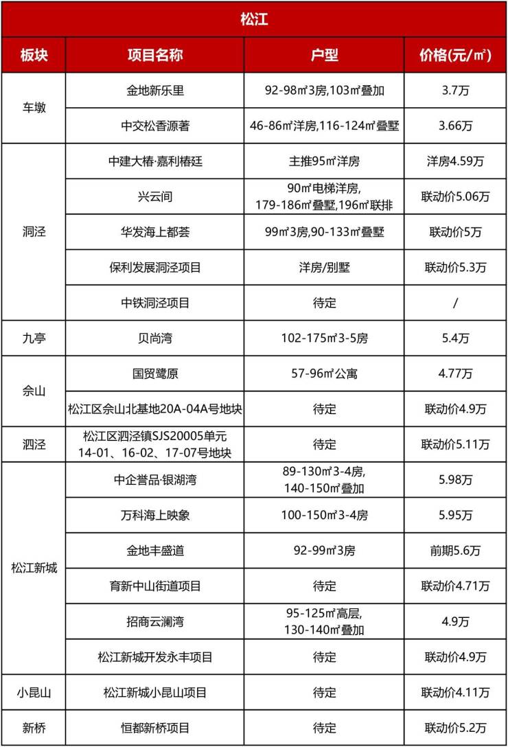 五大新城中,松江新城在城市界面和生活配套方面都处于领先地位,宜居属性很高。2024年松江可重点关注松江新城、洞泾。此外,泗泾地铁站旁和佘山板块即将出让涉宅地块,将于2024年入市。