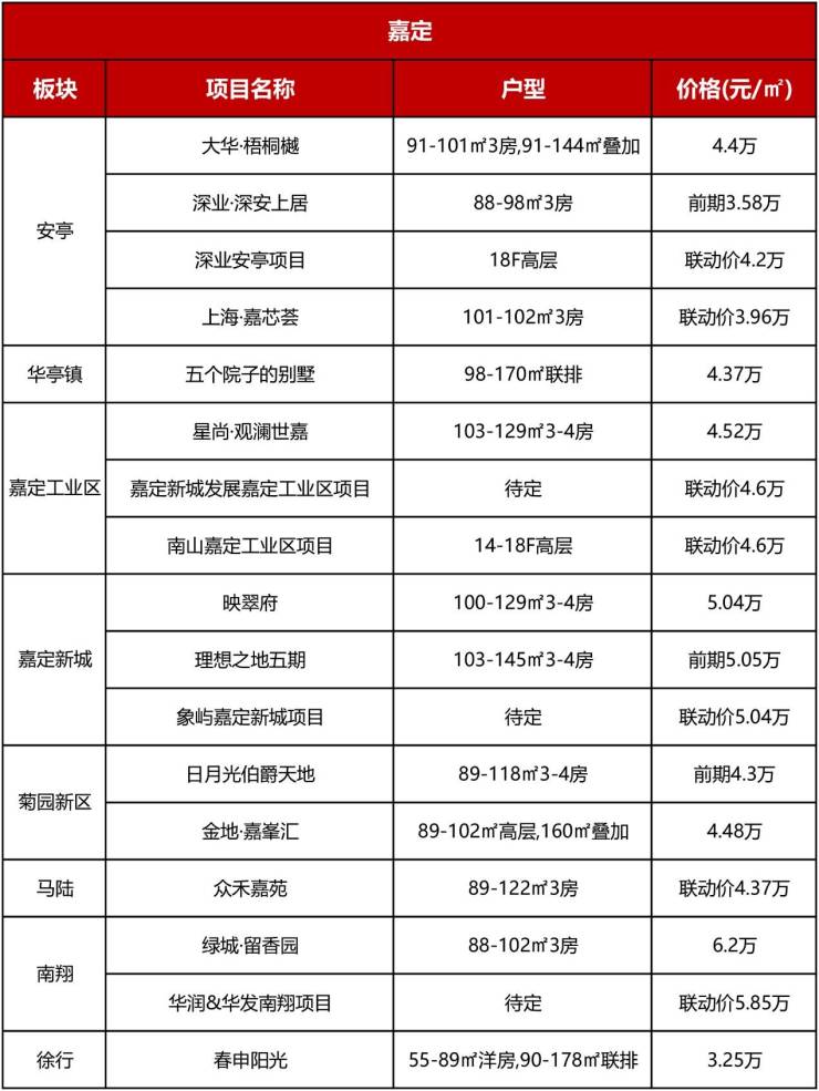 2024年桃浦新房供应量将继续加大,宝华&东苑、建发、金隅联动价7.9-8.55万/㎡不等;长风板块的长风嘉臣道已经被传了很久“即将入市”,此外还有北新泾板块的越秀新盘,联动价达到10.2万/㎡。
