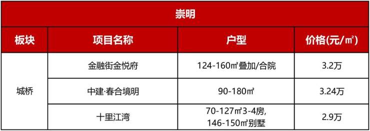 2023年上海土地市场上,崇明“零供应”。2024年新房主要集中在城桥板块,且均为老盘加推,均价2.9万-3.24万/㎡。