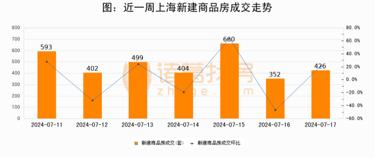 【上海成交日报】07月17日新房成交426套;涨价房源62套