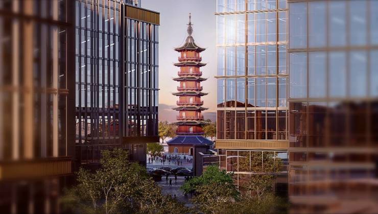 溯源龙华,龙华塔是千年古镇的根基,代表过去。与龙华寺相对而立的龙华会则是带动片区更新,凝聚产业力量,展示未来的舞台。