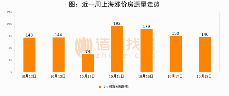 根据诸葛找房数据显示,上海24小时涨价房源量为146套,较10月17日减少4套,环比下降2.7%。与此同时,涨价房源占比小幅回落,对于购房者来说是一个入市窗口期,购房者可抓住时机入市。