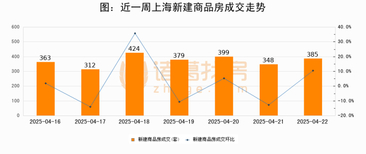 【上海成交日报】04月22日新房成交385套、二手房691套;涨价房源213套