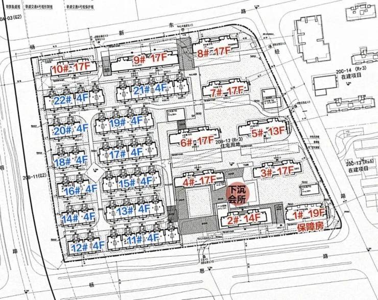 此前公示的设计方案显示,项目拟建10幢13-19层高层住宅、12幢4层多层住宅、配套公建用房以及3幢电业站,小区带有下沉会所,部分楼栋有架空层。
