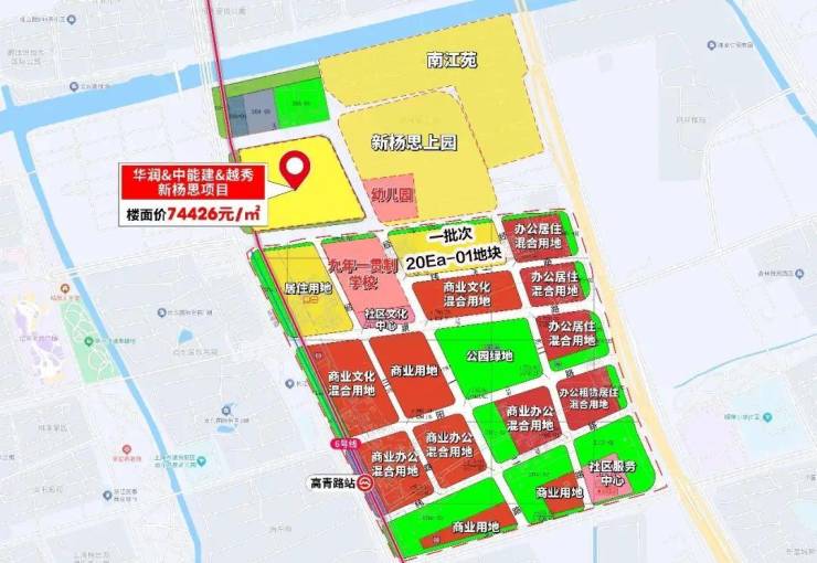 项目东南侧即将于2025年一批次中出让新的宅地:浦东新区Z000602单元20Ea-01地块,该地块起始楼板价达到5.6万/㎡,相比华润中能建越秀新杨思项目上涨了约3000元/㎡。
