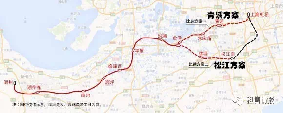 据悉,沪苏湖高铁上海段原先有“青浦方案”和“松江方案”两个方案,如下图: