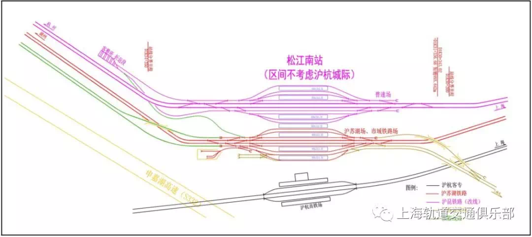 目前松江南站的规模是2台4线,沪苏湖铁路已经明确设站松江南站,结合未来预留线路的接入条件,松江枢纽将扩大至9台23线的规模。