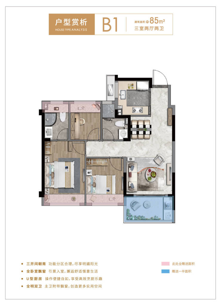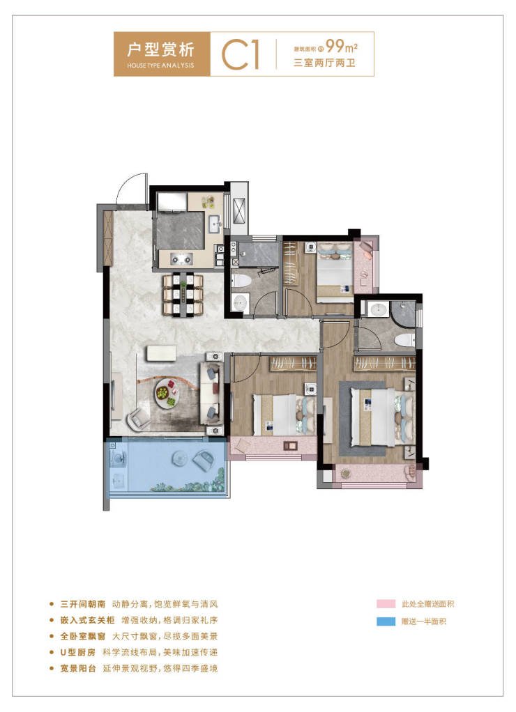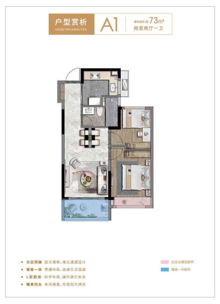 尤其建面约73㎡两房,作为区域200万内绝版小户型,不仅拥有能放入双开门冰箱的宽敞厨房、全明卫厨,更以户型方正、高使用率,敬献未来年轻力出彩生活。