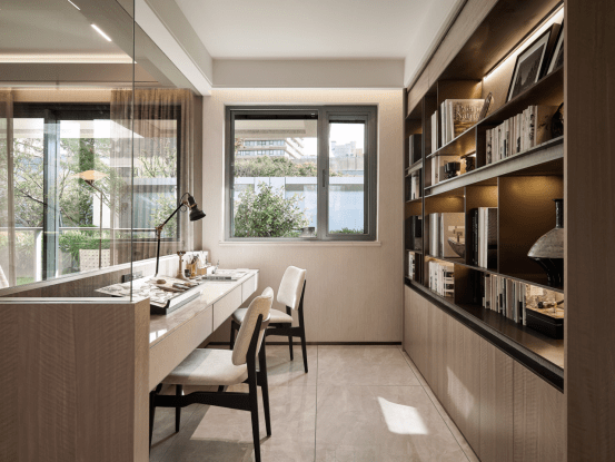128㎡灵动洄游户型,增加X百变空间,它的功能可以根据家庭生活需求自由定义,它可以是封闭的书房,也可以是开放式书房,与厨房、餐厅、客厅无界相连,既可以是接待朋友的社交会客厅,也可以家人之间的亲密剧场。