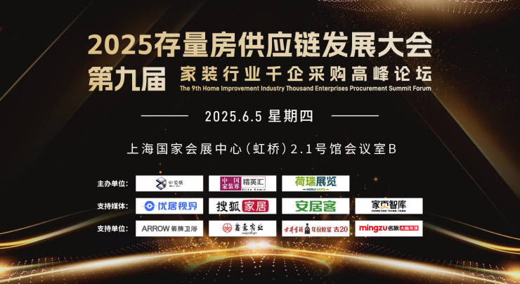 2025年6月5日由中装联、中国家装界精英汇、上海荷瑞展览有限公司联合主办的“第九届家装行业千企采购高峰论坛”在上海国家会展中心 2.1 馆会议室B成功举办。