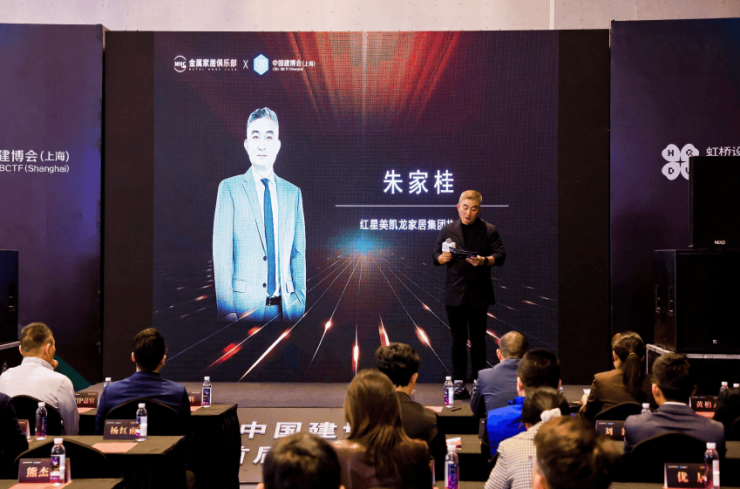 主持人热情洋溢的开场中正式启幕。红星美凯龙家居集团执行总裁朱家桂在致辞中表示,金属家居凭借35%的年复合增长率,正成为家居行业的新增长点。其独特的美学设计和环保特性,完美契合当代消费需求。