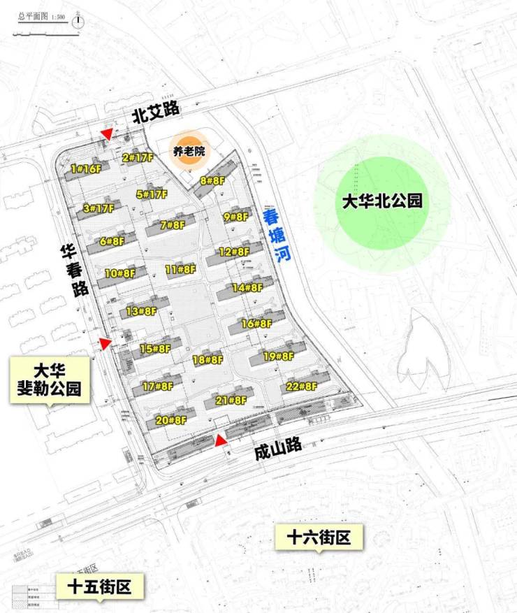 大华锦宸府南临成山路、西到华春路,北抵北艾路,东侧是春塘河和大华北公园。西侧是大华斐勒公园,大华斐勒公园2020年10月开过盘,当时洋房+叠墅均价10.26万/㎡,南侧是大华锦绣华城16街区。