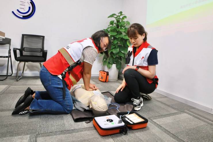 2022年,美的置业沪苏皖的小区还多了一个“安全”的新标签。6月开始,美的置业联合江苏省红十字会、南京市红十字会,在区域内开展“人人学急救”及“AED进社区”活动,成为江苏省首家自主引入AED的房企,并通过常态化开展应急救护培训等措施,将社区打造为集急救设备、应急救护、知识科普于一体的安全小区。至年底,美的置业沪苏皖区域现已实现物业人员应急救护培训率超90%,向社会输送了超2000名持证救护员。