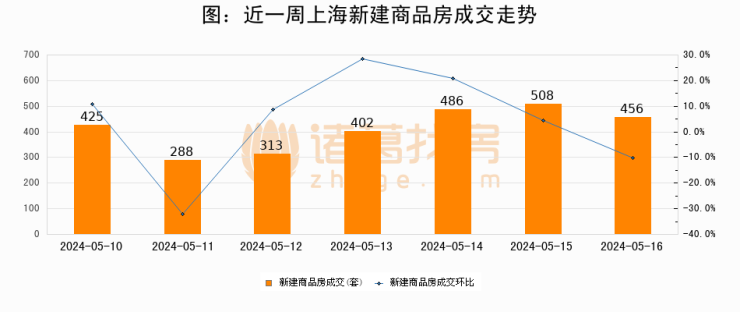 【上海成交日报】05月16日新房成交456套;涨价房源186套