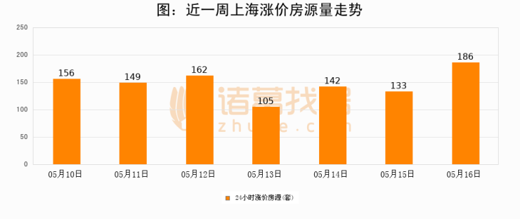 根据诸葛找房数据显示,上海24小时涨价房源量为186套,较05月15日增加53套,环比上涨39.8%。与此同时,涨价房源占比小幅扩大,业主信心有所提升。