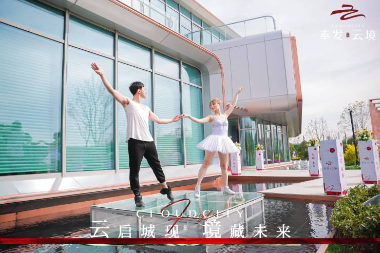 循云路而行,「云间美学生活馆」终于揭开了惊艳面纱。充满质感的玫瑰金檐,融合大玻璃幕墙上倒映的白云流水,让整个艺术建筑熠熠生辉。云端舞台上,水上芭蕾舞者的身影优雅蹁跹,精彩演绎让嘉宾们惊喜不已。