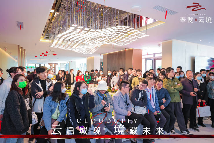 随着“云境”LOGO的最后一块拼图被点亮,彩烟升腾,悠扬乐曲交织,奉发云境营销中心在众人共瞩之下正式盛放,众人边巡礼欣赏,边品尝美味茶歇,现场人声鼎沸、热闹非凡。
