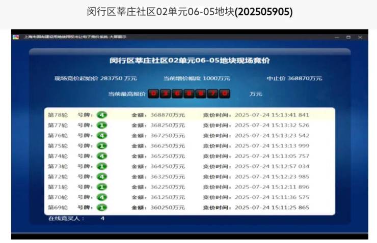 7月24日下午,上海第六批次土拍中,闵行莘庄地块正式开拍。